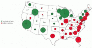 Within the Unites States, there are well-known areas of milk surpluses and deficits (Figure 1). Contrary to what is alleged by locavores, local or even regional self-sufficiency makes absolutely no economic sense. The flawed principle of local production violates an economic law as fundamental as what gravity is to the physical sciences. The national wealth is improved by increasing inter-regional trade. It doesn‘t make more economic sense to artificially support milk production in Florida than to encourage pineapple production in North Dakota. Therefore, the sight of a map showing large areas of milk deficit should be no more alarming than a map showing large areas of citrus deficits. Different regions possess an economic advantage at producing select goods and services and the trading of these goods and services across regions enhances the overall wealth.
