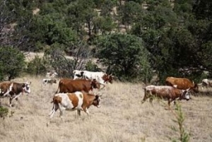 Steers headed to pasture on the US Department of Agriculture-Agricultural Research Service, Jornada Experimental Range in southern New Mexico.