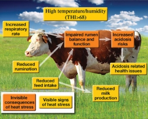 - Recent research shows that increasing milk production from 35 to 45 litres/day reduces the threshold temperature for heat stress by 5°C.