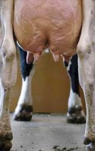 The cow's udder consists of four separate quarters containing a complex network of various sized ducts, blood vessels and capillaries, ligaments, and secretory tissue. Because milk is constantly being produced and is stored in the udder between milkings, it must be strong and well attached to the cow. In high producing cows, 60 pounds of milk may be stored in the udder between milkings.