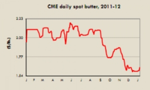 Spot butter, on the other hand, was bid 3.5¢ higher to $1.64. Last year the butter price gained 43¢ in the first week of the year, then stayed above $1.90 until September (see chart).