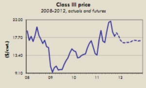 Class III futures for 2012 average $16.78 (see chart). The October Class III price is $18.03, down $1.04 from September and off $3.64 from the August peak.