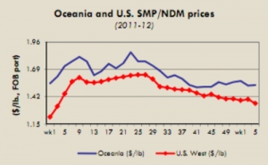 Meanwhile, Oceania SMP prices have held mostly steady since October (see chart). DMN pegs current prices at $1.49-$1.59. “Traders and handlers indicate that powder stocks are sufficient to fulfill commitments with minimal volumes remaining as uncommitted,” DMN says.