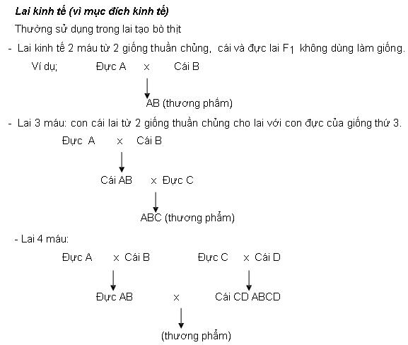 Thí dụ  ở vùng nhiệt đới nóng không muốn con lai có tỷ lệ máu bò ôn đới cao thì con lai F1 cho phối lại với đực địa phuong:
