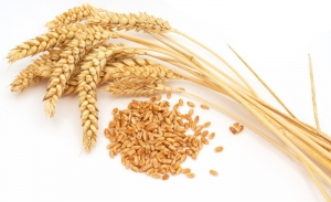 Hình 3. Sơ đồ cấu tạo một hạt gạo mì lứt (kernel - hạt lứt; endosperm - nội phôi nhũ; bran - cám; germ - mầm). Nội phôi nhũ chứa tinh bột, chiếm 83% khối lượng hạt gạo lứt; cám thì chứa protein và xơ, chiếm 14%; mầm thì nhiều protein, dầu và vitamin, chiếm 3%.