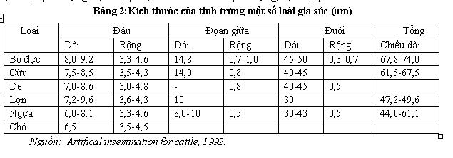 Tinh trùng của các loài gia súc rất nhỏ, không khác nhau nhiều về hình dạng bên ngoài và kích thước mặc