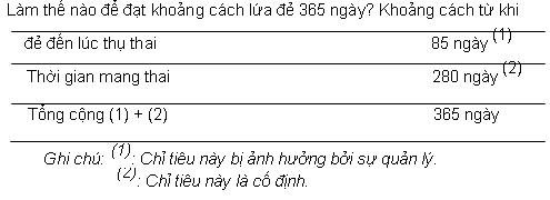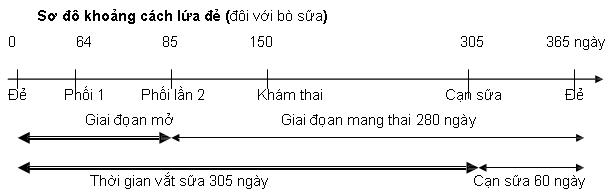 365ngày). Với khoảng cách lứa đẻ lý tưởng như vậy ta có 305 ngày cho vắt sữa và 60 ngày cạn sữa chuẩn bị cho lứa sữa sau.