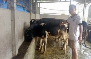 Để có nguồn thức ăn cho bò, anh Thảo trồng 5 sào cỏ voi, cỏ sả, mua rơm rạ dự trữ cho bò ăn quanh năm. Anh lấy ngắn nuôi dài bằng cách lấy heo “nuôi” bò, với 7 heo nái sinh sản bán heo con giống. Chỉ tính trong năm 2015, từ bán bò sữa thịt, bê lai, heo con giống, anh Thảo thu lãi không dưới 150 triệu đồng.