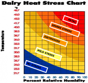 Stress nhiệt là hiện tượng xảy ra khi ẩm độ và nhiệt độ gây bất lợi cho bò. Bò điều hòa thân nhiệt chủ yếu qua da và hơi thở. Tuy nhiên, với những giống bò sữa cao sản, thường có nguồn gốc từ vùng ôn đới, qua quá trình thích nghi, u yếm không còn phát triển, nên khả năng thải nhiệt qua da càng hạn chế, bò rất dễ bị stress khi nhiệt độ và ẩm độ môi trường cao.