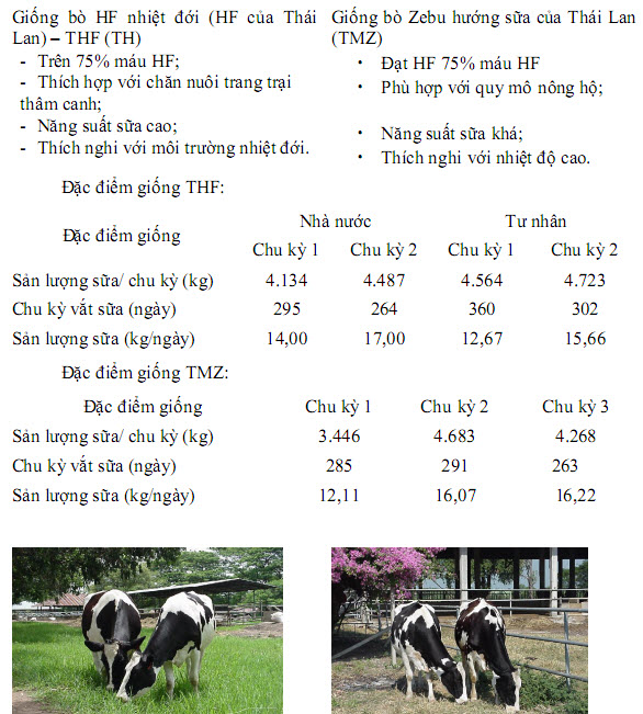 Giống bò sữa HF nhiệt đới THF của Thái Lan Giống bò Zebu hướng s ữa TMZ của Thái Lan