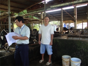 Hiện nay, tổng đàn bò của gia đình là 83 con, trong đó có 40 con đang khai thác sữa, năng suất sữa bình quân 15kg/con/ngày, giá bán sữa cho công ty Vinamilk bình quân 10.000đ/kg; ngoài ra, trong quá trình nuôi, anh nhận thấy trở ngại lớn nhất là phải giải quyết được nguồn thức ăn thô xanh cho bò trong mùa nắng nóng khi mà lượng cỏ tự nhiên đã khan hiếm và giá cỏ hiện khá đắt. Với số lượng đàn bò như hiện nay, nếu không đủ cỏ cho bò ăn sẽ ảnh hưởng đến sự tiết sữa của bò. Chính vì thế, gia đình anh đã mạnh dạn trồng thâm canh 2ha cỏ voi để chủ động nguồn thức ăn thô xanh quanh năm cho đàn bò; ngoài ra, được sự hỗ trợ kinh phí mua máy vắt sữa của Trung tâm Khuyến nông trong việc xây dựng mô hình “Chăn nuôi bò sữa hoàn chỉnh“, đã giúp gia đình anh tiết kiệm được thời gian vắt sữa, công lao động, tăng sản lượng sữa do máy hoạt động phù hợp với sinh lý và thời gian tiết sữa của bò, hạn chế nhiễm vi sinh trong quá trình vắt sữa, đảm bảo an toàn vệ sinh thực phẩm, đồng thời đảm bảo thời gian vắt và giao sữa đúng thời gian quy định.
