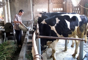 Chúng tôi vào nhà anh Đặng Quang Huy, hỏi anh nuôi bò sữa có khó không? anh cười, nói vanh vách quy trình chăn nuôi từ chọn mua con giống đến sử dụng thức ăn, kỹ thuật vắt sữa, bảo quản sữa cho tới khi bán… Tất cả những khâu này do cán bộ kỹ thuật hướng dẫn, vừa làm, vừa học, đúc rút kinh nghiệm. Năm 2012, gia đình anh nuôi 6 con bò lấy sữa, thu lãi 100 triệu đồng từ bán sữa, 50 triệu đồng từ bê con. Mùa hè, mỗi con cần 2 sào cỏ giống mới, mùa đông 3 sào vẫn thiếu, cộng với thiếu vốn thầu đất trồng cỏ, mua thêm bò và các cháu đi học nên hiện anh chỉ nuôi 4 con.