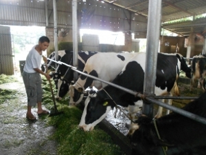 Không chỉ nuôi bò, gia đình anh còn mở trạm thu gom sữa của những hộ nuôi bò sữa các vùng lân cận. Mỗi ngày, anh thu mua khoảng 7 đến 8 tạ sữa tươi. Những ngày cao điểm có thể lên tới 1 tấn sữa. Hiện tại, những hộ gia đình chăn nuôi bò sữa như nhà anh không phải lo lắng đầu ra như một số nghề mới khác mà trực tiếp ký hợp đồng bao tiêu sản phẩm với các công ty sữa lớn như Công ty Sữa Quốc Tế (IDP) và Công ty Sữa Hà Nội (Hanoimilk).