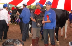 Hoa hậu bò sữa năm nay thuộc về chú bò của bà Nguyễn Thị Chiên, tiểu khu 82, thị trấn Nông Trường, với giải thưởng trị giá 46 triệu đồng.