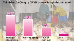 Trong danh sách 500 doanh nghiệp lớn nhất VN năm 2010 (VNR500), hẳn không ít người sẽ rất ngạc nhiên khi biết rằng xếp ở vị trí thứ 23, chỉ sau những tập đoàn lớn của Nhà nước, ngân hàng lớn là một công ty kinh doanh lĩnh vực nông nghiệp, đó là Công ty cổ phần chăn nuôi CP VN (CPVN). Càng ngạc nhiên hơn khi mới đây ông Sooksunt Jiumjaiswanglerg, tổng giám đốc CPVN, công bố doanh thu của công ty năm 2010 đạt 1,1 tỉ USD.