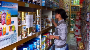Chị Hoàng Thị Hà, chủ cửa hàng sữa trên phố Ngọc Lâm, quận Long Biên, Hà Nội nói: “Ổn định giá sữa là do các công ty sữa, cửa hàng chỉ là trung gian bán hàng”.