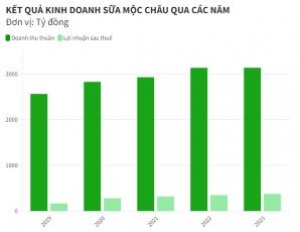 Năm 2023, Mộc Châu Milk có doanh thu thuần đi ngang, đạt hơn 3.135 tỷ đồng. Lợi nhuận sau thuế hơn 374 tỷ đồng, tăng 8% so với năm trước và là mức cao nhất trong lịch sử hoạt động.