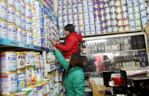 Sữa ngoại nhập được bày bán tại một cửa hàng ở Hà Nội