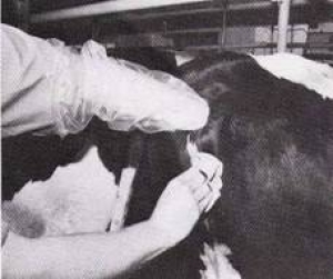 Đeo găng tay vào tay trái (đối với người thuận tay phải). Khi đến gần bò thì yêu cầu đứng nghiêng về một bên theo hướng thuận tay đưa vào trực tràng. Khi đưa tay đeo găng vào trực tràng thì