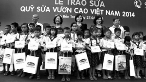 Là đơn vị tài trợ duy nhất cho chương trình Quỹ sữa “Vươn cao Việt Nam” liên tiếp 6 năm liền, bà Bùi Thị Hương - Giám đốc Đối ngoại Vinamilk chia sẻ: “Trẻ em ở huyện Ba Tri - Tỉnh Bến Tre còn gặp nhiều khó khăn trong cuộc sống vì điều kiện vật chất còn khá thiếu thốn, tuy vậy các em vẫn vượt khó để vươn lên, đó là điều rất đáng được xã hội quan tâm. Chính vì vậy, thông qua Quỹ sữa Vươn cao Việt Nam, với tinh thần trách nhiệm cao đối với cộng đồng, Vinamilk mong muốn được góp phần cải thiện phần nào điều kiện dinh dưỡng cho các em”.