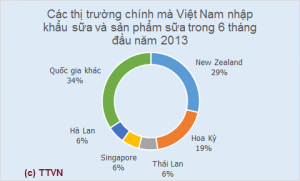 Theo số liệu từ Tổng Cục Hải quan, trong 6 tháng đầu năm 2013, Việt Nam đã nhập khẩu tổng cộng 495,6 triệu USD sữa và sản phẩm sữa. Trong đó, nhập khẩu từ New Zealand là 142,4 triệu USD, tương đương 28,7% tổng giá trị nhập khẩu.